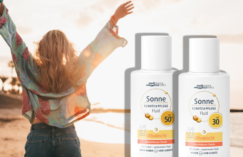 Leicht, unsichtbar und geschützt mit den Sonnenschutz Fluids von medipharma cosmetics