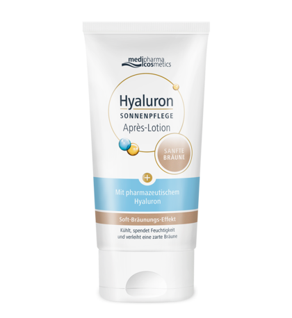 Nach der Sonne ist vor der Sonne, daher ist eine Pflege mit After Sun unumgänglich und eine absolute Wohltat. Nach dem Sonnen gönnen Sie sich und Ihrem Körper mindestens eine halbe Stunde Ruhe, damit die Haut abkühlen und regenerieren kann. Dann waschen Sie Reste von Sonnencreme, Salz und Chlor mit lauwarmem Wasser und einem milden Reinigungsprodukt von Körper und Gesicht, tupfen sich mit einem weichen Handtuch trocken (oder an der Luft trocknen lassen) und cremen sich anschließend großzügig mit einer After Sun Lotion ein. Das Beste kommt zum Schluss: Mit unserer After Sun Hyaluron Sonnenpflege Après-Lotion Sanfte Bräune legen Sie noch eine Schippe drauf. Der enthaltene Soft-Bräunungs-Komplex verleiht der Haut schrittweise eine zarte und natürlich aussehende Sommerbräune. Die leichte Textur lässt sich gut verteilen und zieht schnell ein und hinterlässt eine streifenfreie Bräune. Das pharmazeutische Hyaluron versorgt die Haut mit Feuchtigkeit, gleichzeitig werden Irritationen und Hitzestress gelindert, wird die Haut erfrischt und beruhigt. Und am nächsten Morgen dürfen wir uns über schöne Sommerhaut freuen.