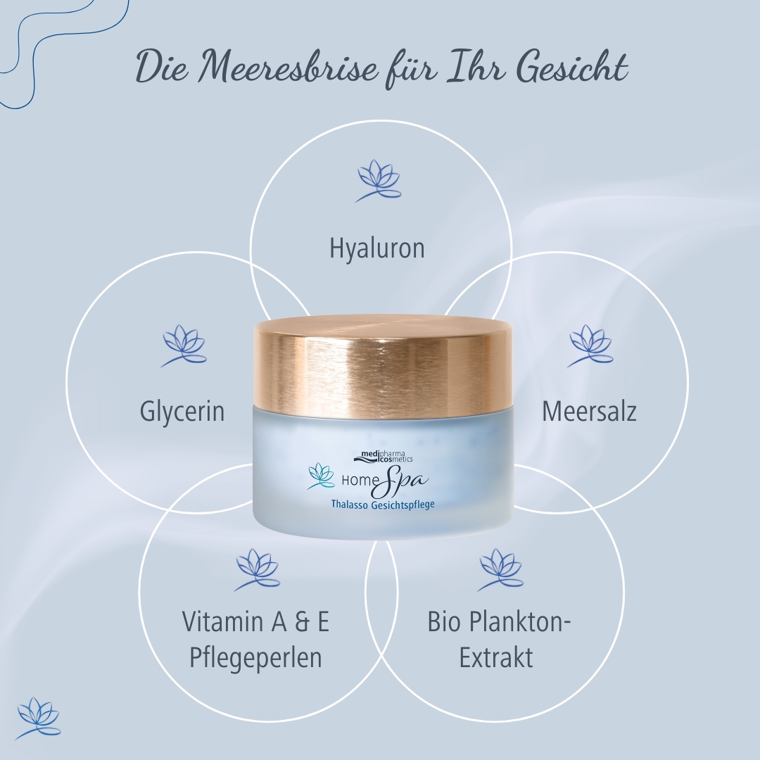 - Pflegekomplex mit: Bio-Plankton-Extrakt, Hyaluron, Meersalz, Pflegeperlen und Glycerin